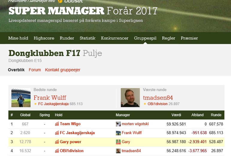 BØDER SUPERLIGA - FORÅR 17